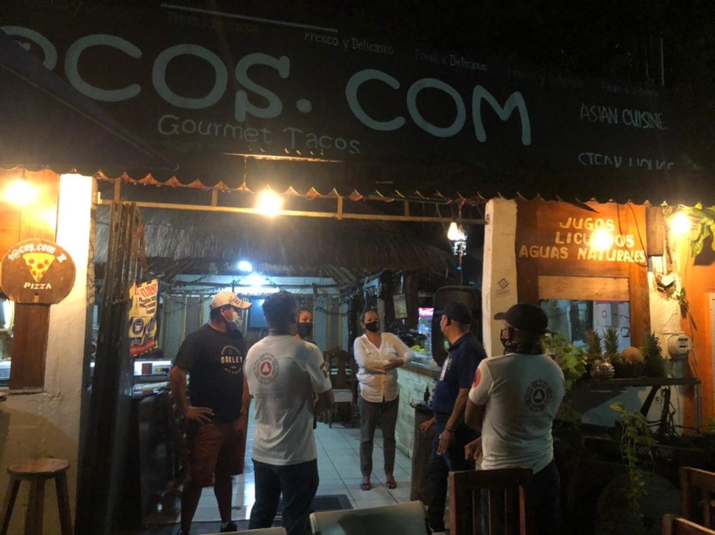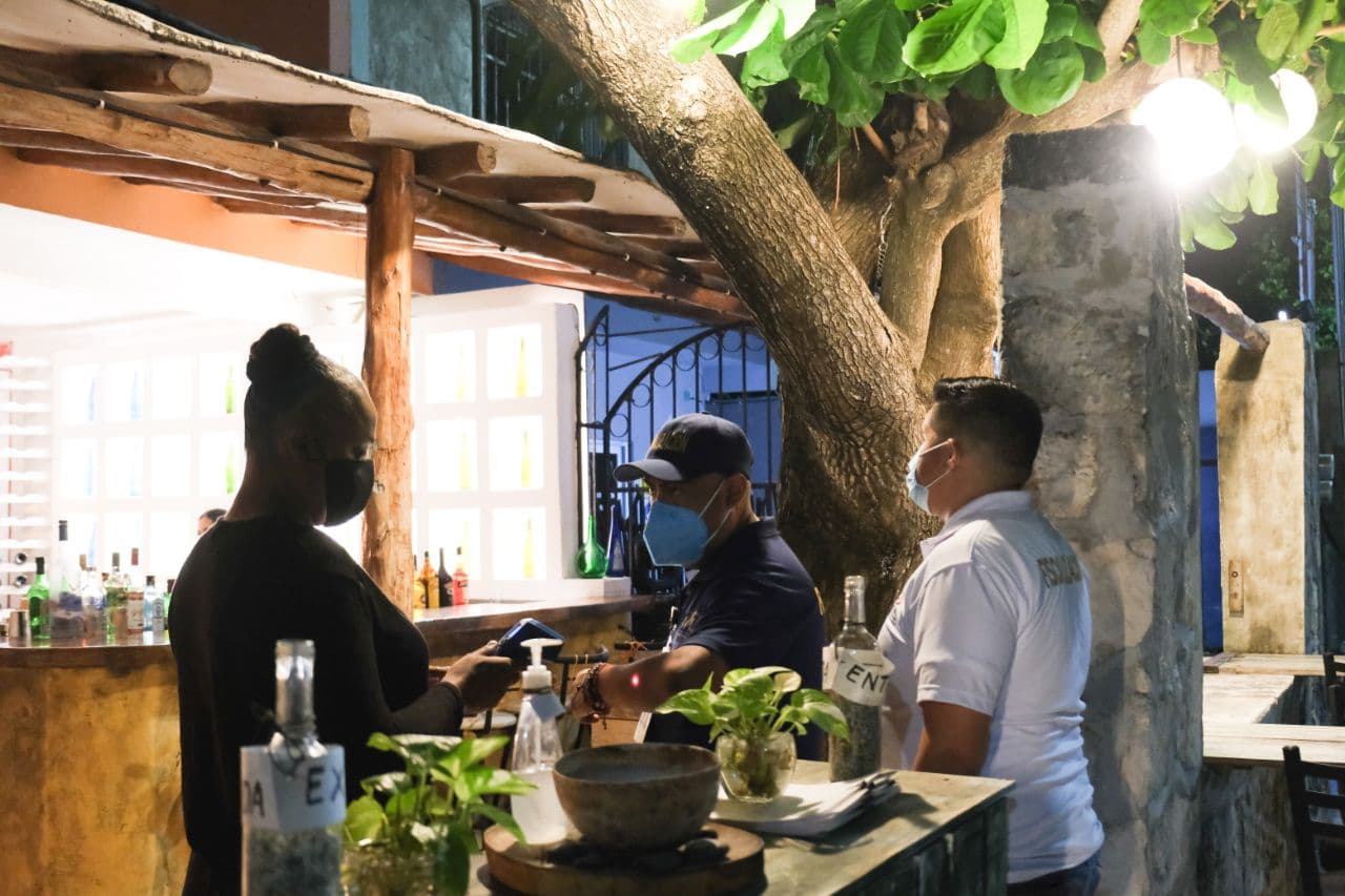 Puerto Morelos, Quintana Roo, 31 de enero de 2021.- El gobierno de la presidenta municipal Laura Fernández Piña redobla las acciones para hacer frente a la pandemia de Covid-19, por lo que personal de la Dirección de Fiscalización realiza operativos diarios de vigilancia en establecimientos para verificar que se respeten los protocolos sanitarios y el aforo permitido de personas.