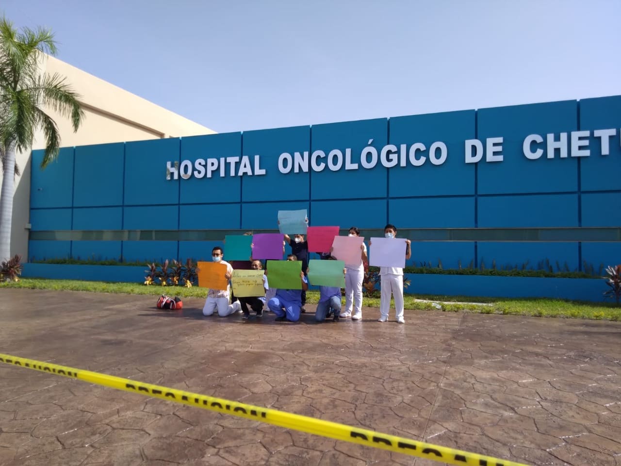 Chetumal.- Un grupo de trabajadores del Hospital Oncológico de esta ciudad realizó una manifestación pacífica hoy para denunciar que ya llevan cinco quincenas sin cobrar salario, pues el Instituto de Salud para el Bienestar (Insabi) no ha liberado estos recursos.