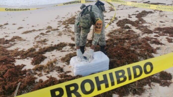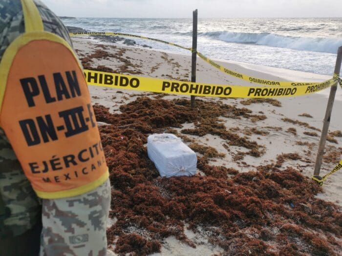 Cozumel.- Fue encontrado el día de hoy por efectivos del Ejército México, un costal que contenía 30 paquetes de cocaína en una playa del lado este de la Isla de Cozumel.