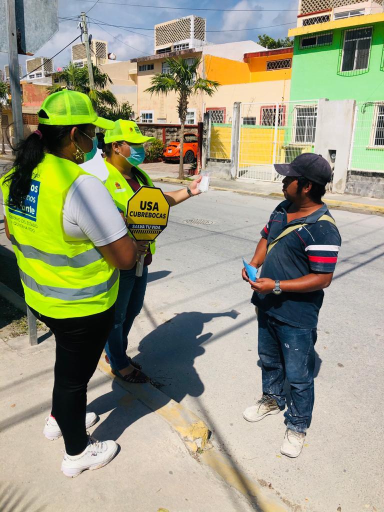 La Presidenta Municipal destacó la labor de los llamados “Chalecos Amarillos” o “Gorras Amarillas”, quienes recorren la geografía municipal, sobre todo los principales puntos de concurrencia, como son negocios, la zona turística y paraderos del transporte público, con el objetivo de generar conciencia entre los habitantes de cuidarse para poder cuidar a los que los rodean.