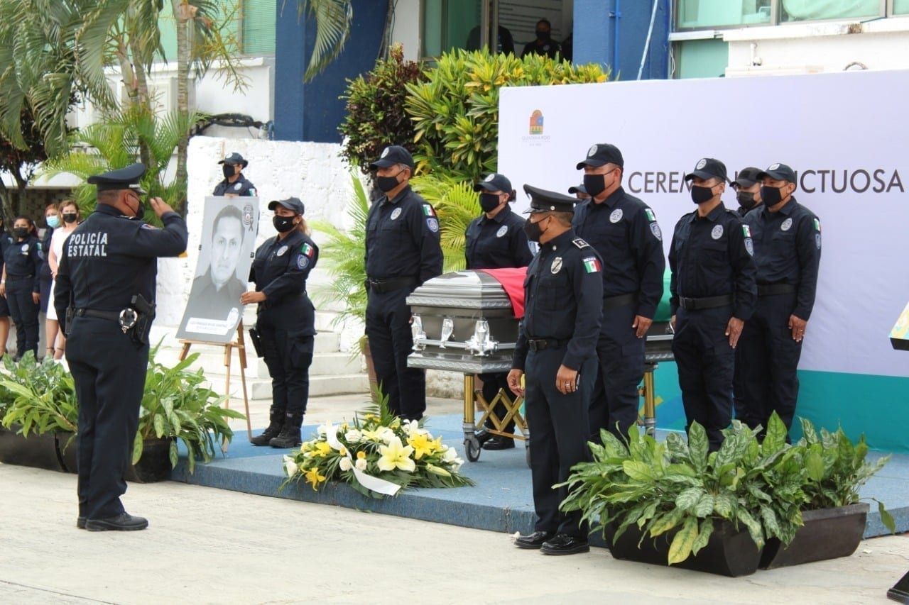 De manera muy respetuosa se rindieron honores, pase de lista y unos minutos de guardia, seguidamente el Encargado de la Secretaría de Seguridad Pública de Quintana Roo, Lucio Hernández Gutiérrez, dio unas palabras de despedida para el elemento.