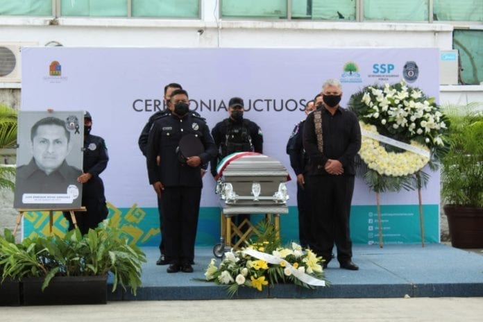Playa del Carmen.- Elementos de la Secretaría estatal de Seguridad Pública participaron en una ceremonia luctuosa al oficial de la Policía Quintana Roo, Luis Enrique Rivas Sánchez, asesinado el fin de semana en Playa del Carmen.