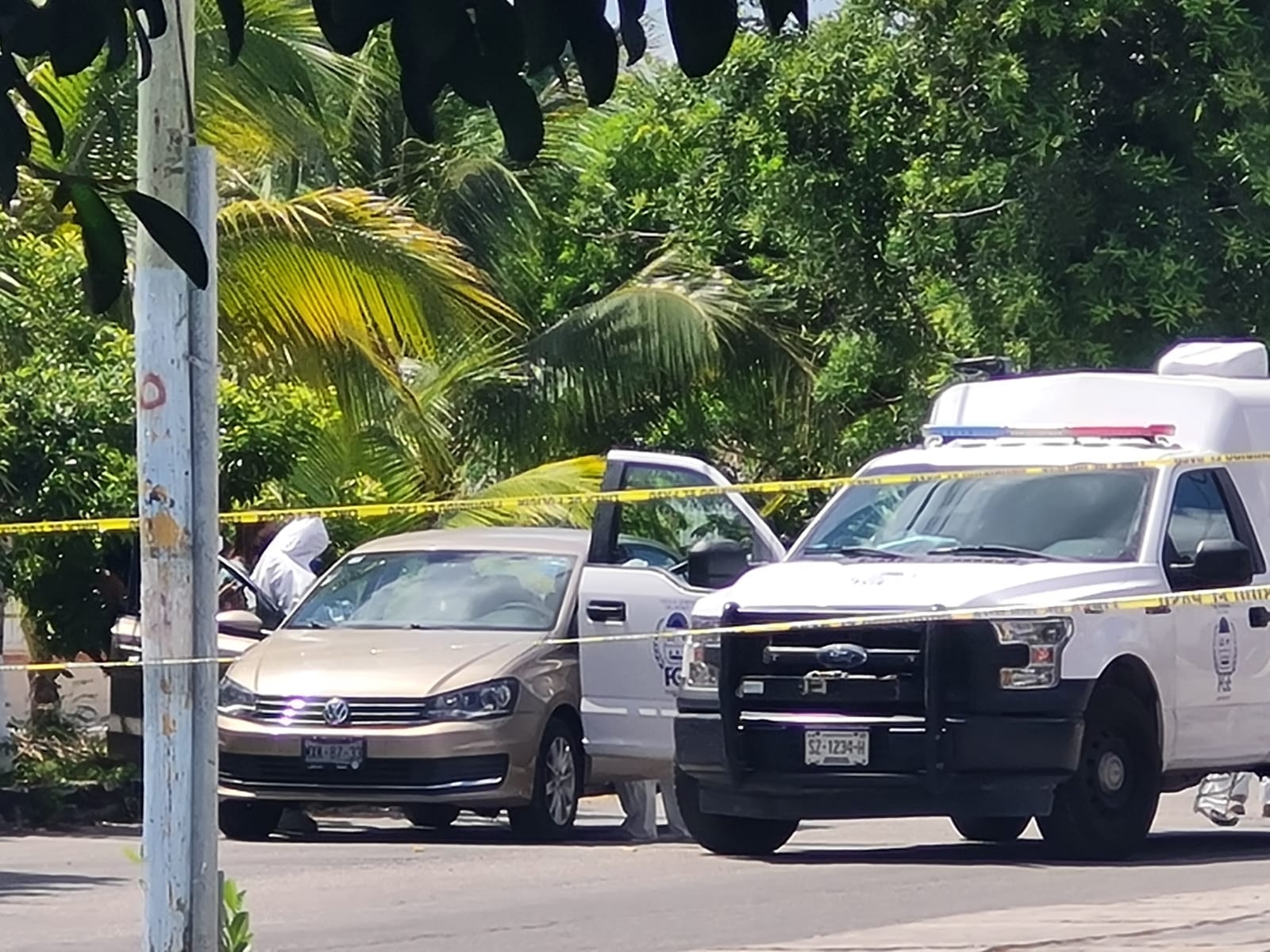 Instantes después llegaron al sitio varias patrullas de la Policía Quintana Roo, quienes únicamente acordonaron la zona en espera de los Servicios Periciales, debido a que la víctima ya no contaba con signos vitales.