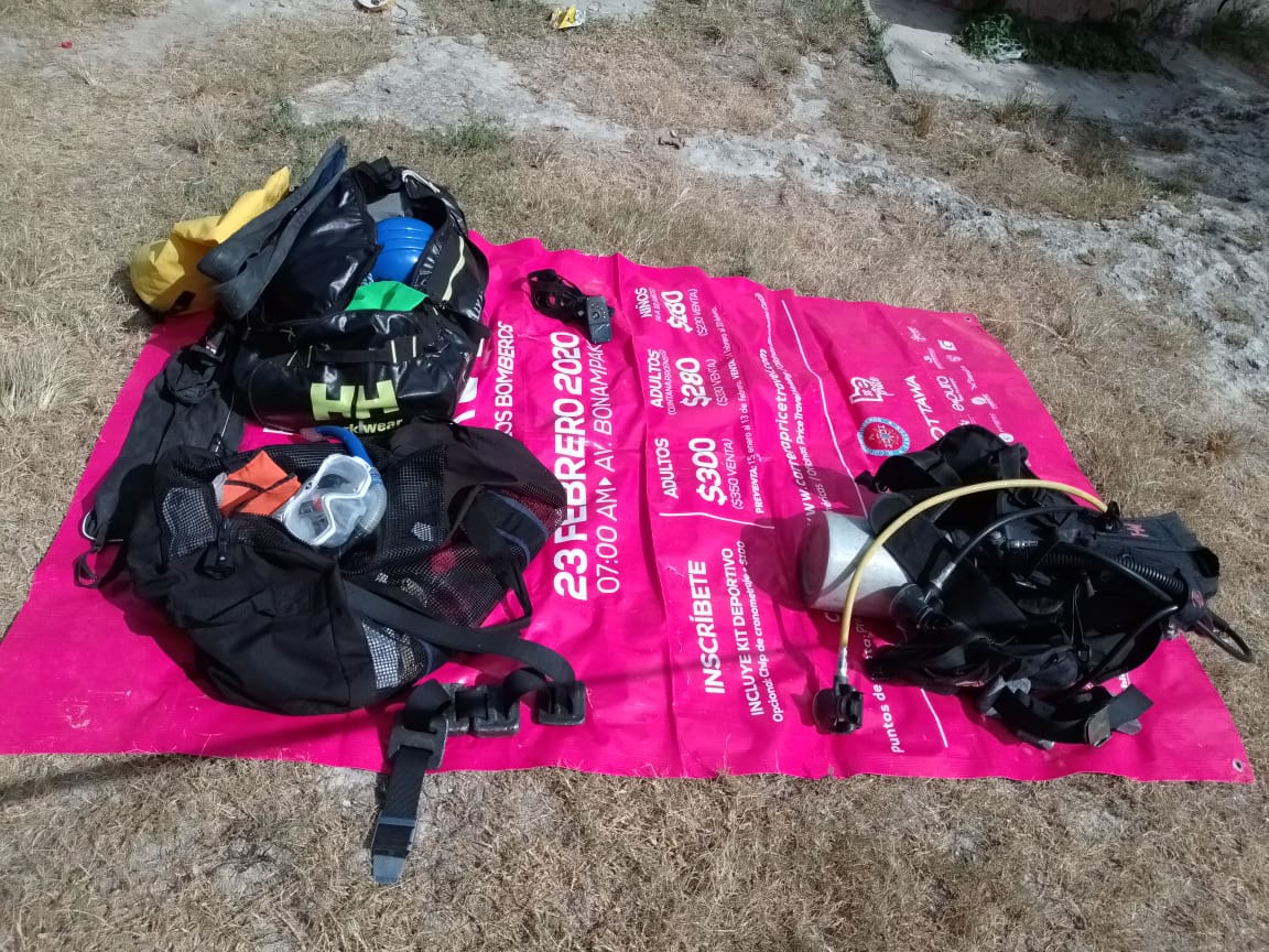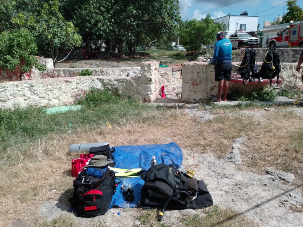 En tanto, son cinco los buzos que están abocados a las labores de barrido al interior del cenote, apoyados de equipo y tanques de oxígeno.