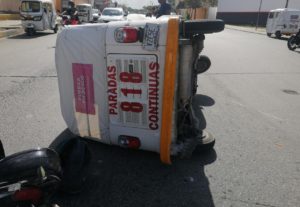 Playa del Carmen.- Por circular a exceso de velocidad, el conductor de un moto taxi ocasionó un accidente de tránsito, en el fraccionamiento Villas del Sol, en el que no hubo lesionadas, sólo daños materiales.