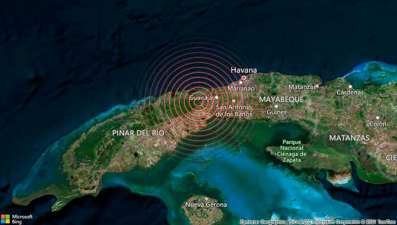 “Hasta el cierre de esta información, se recibieron reportes de perceptibilidad en varios edificios altos de la ciudad de La Habana, las localidades de Candelaria y San Cristóbal, en la provincia de Artemisa, y varias localidades de la Isla de la Juventud”, agrega el comunicado del Cenais.