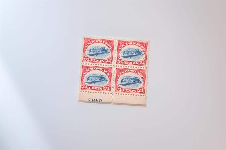 En los sellos, comprados por primera vez en 1918, aparece un avión biplano Curtis JN-4, apodado Jenny, y que por un error de imprenta estaba del revés.