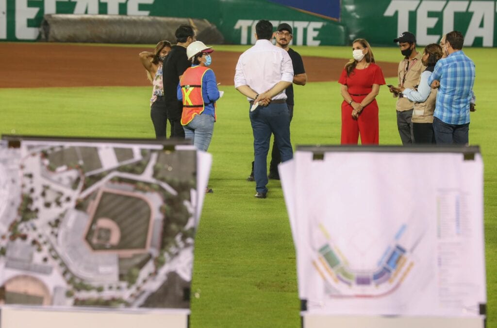 Cancún.- La Presidenta Municipal de Benito Juárez, Mara Lezama, acompañó en la gira de trabajo que encabezó el secretario de Desarrollo Agrario, Territorial y Urbano (SEDATU), Román Guillermo Meyer Falcón, para constatar el avance de las obras que realiza dicha dependencia federal en Cancún y el reconocimiento del espacio en el estadio de béisbol “Beto Ávila” para la generación de un complejo deportivo.
