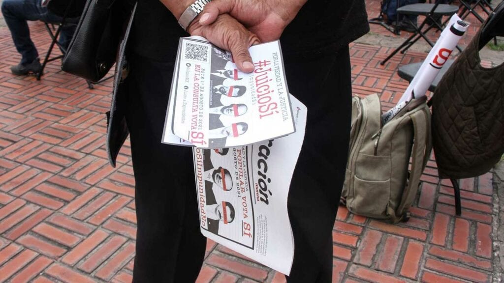 “¿Estás de acuerdo o no en que se lleven a cabo las acciones pertinentes, con apego al marco constitucional y legal, para emprender un proceso de esclarecimiento de las decisiones políticas tomadas en los años pasados por los actores políticos, encaminado a garantizar la justicia y los derechos de las posibles víctimas?”