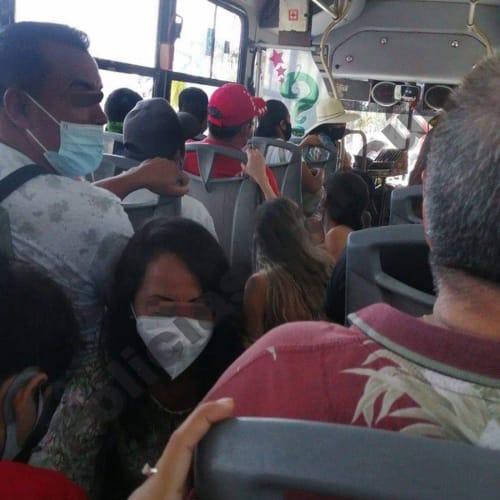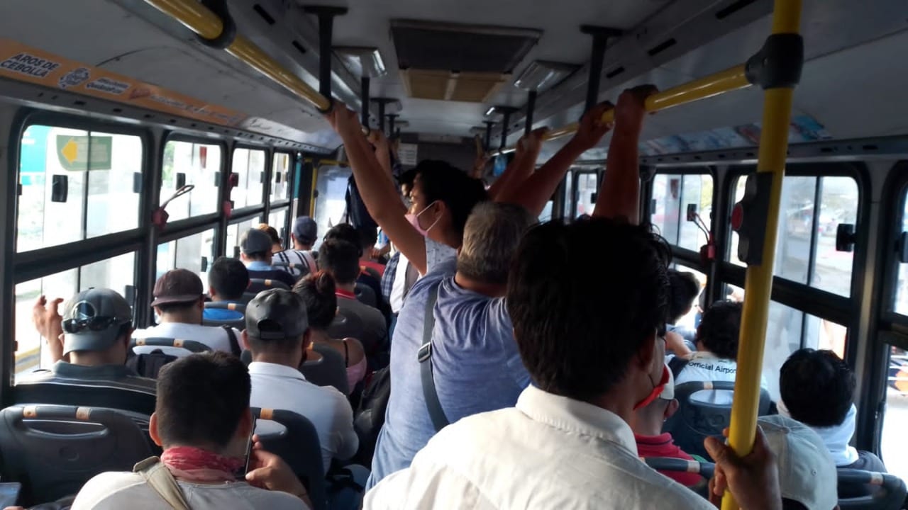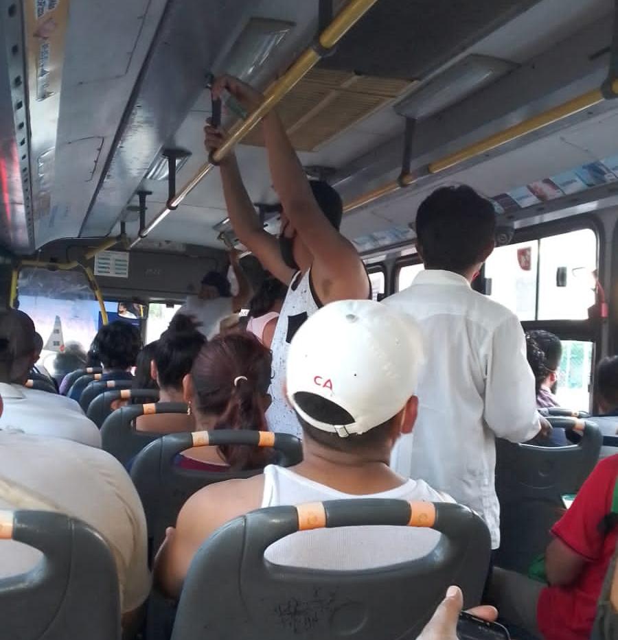 Cancún.- Sin importar cuántos, exhortos, advertencia o medidas que apliquen, las unidades de transporte público continúan circulando en su mayoría con la máxima capacidad, e incluso con personas de pie.