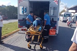 Al observar lo sucedido, ciudadanos auxiliaron de manera inmediata a la mujer hasta que llegó una ambulancia para su atención prehospitalaria en el lugar de los hechos.