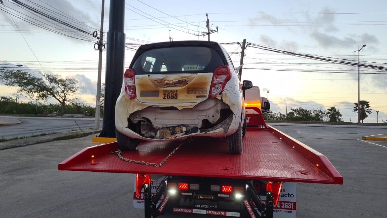 Cancún.- Sin lesionados, pero en cambio pérdidas por varios miles de pesos dejó esta mañana un incendio que afectó tres vehículos, luego de que uno de ellos comenzó arder al caer en un bache en avenida de acceso a Cancún.