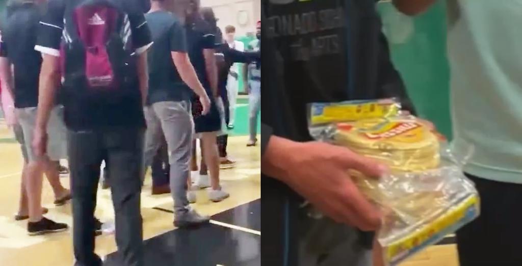 Viral.- En una secundaria ubicada en San Diego, Estados Unidos, un equipo de básquetbol de secundaria lanzó tortillas al conjunto rival.