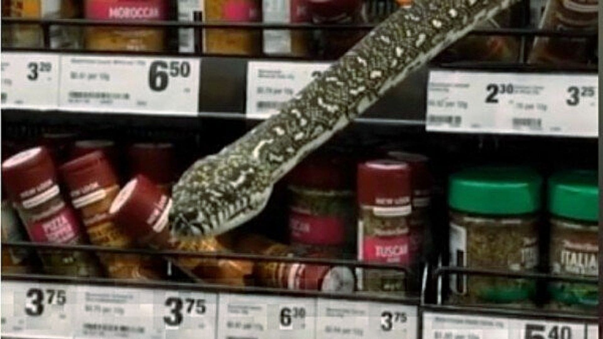VIDEO: Una serpiente de tres metros de largo aparece en el estante de especias de un supermercado