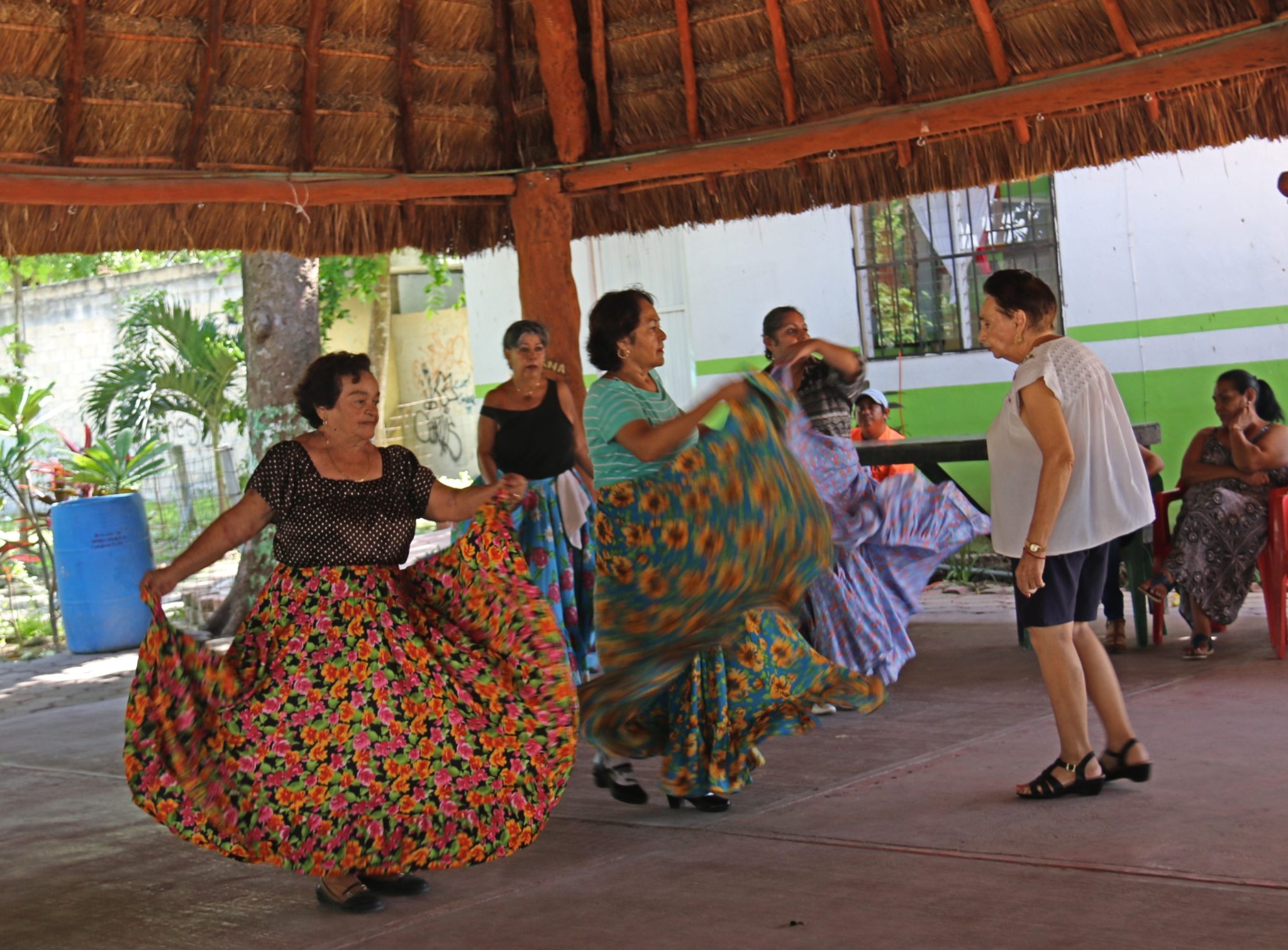 Puerto Morelos, Quintana Roo.- Nunca es tarde para aprender a cantar o bailar, o así lo reflejan más de treinta adultos mayores que toman el taller de danza que ofrece el Centro Cultural Lupita, en Puerto Morelos.
