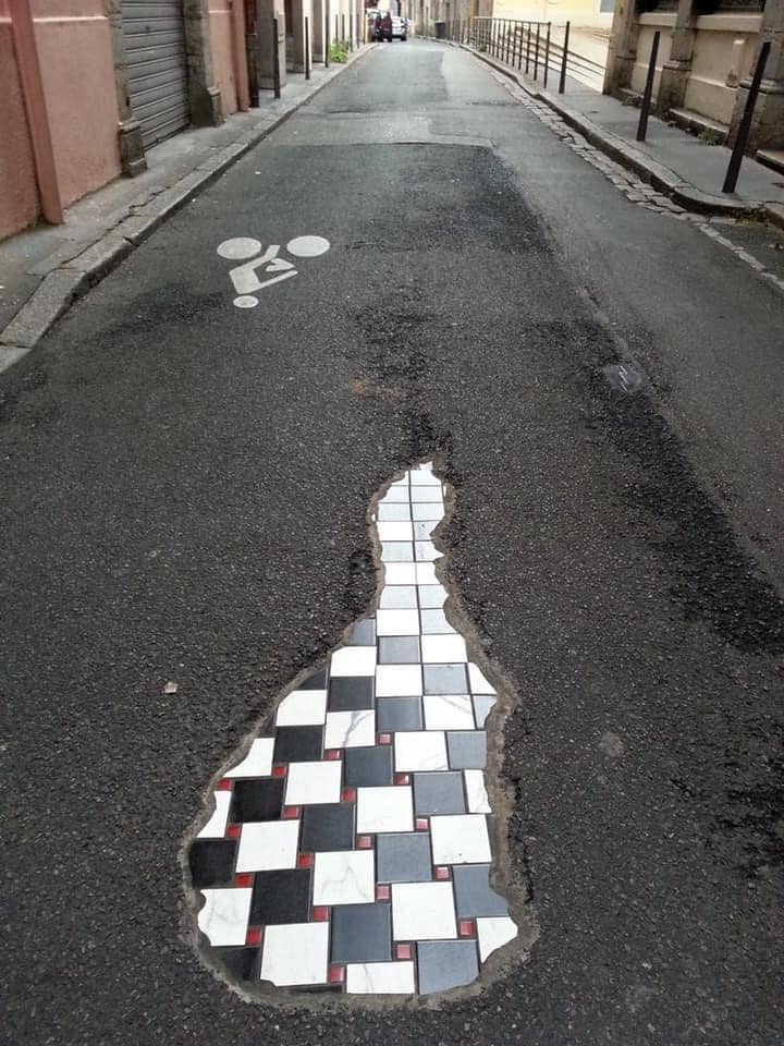 Francia: Artista llena los baches y grietas en la ciudad con mosaicos