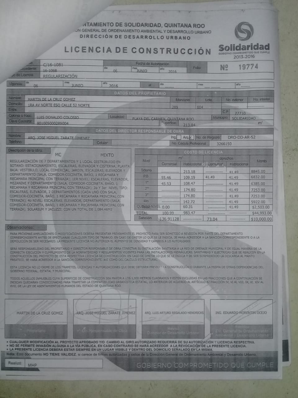 Que el priísta recuerde que, para regularizar su edificio con 7 departamentos y un local que tiene en la 1era avenida Norte esquina con calle 52, en la colonia Luis Donaldo Colosio; Mauricio Góngora le otorgó un descuentazo.