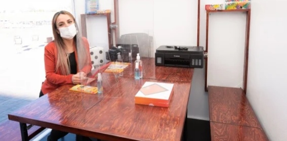 Para conservar la distancia entre maestra y alumno, Nissan adecuó el salón de clases móvil con un acrílico ubicado en la mesa de trabajo y múltiples puntos de ventilación.