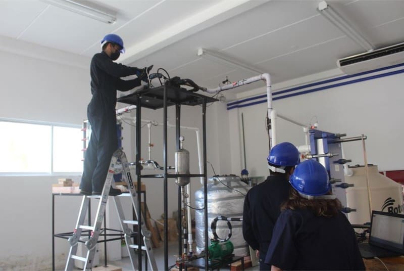 De acuerdo con la Dra. Estela Cerezo, profesora-investigadora del Cuerpo Académico de Sistemas Energéticos y Sustentabilidad (CASES), el pasado 31 de agosto, se realizó con éxito la prueba piloto del prototipo a nivel laboratorio OTEC-CC-MX-1kWe, en las instalaciones de la Unicaribe.