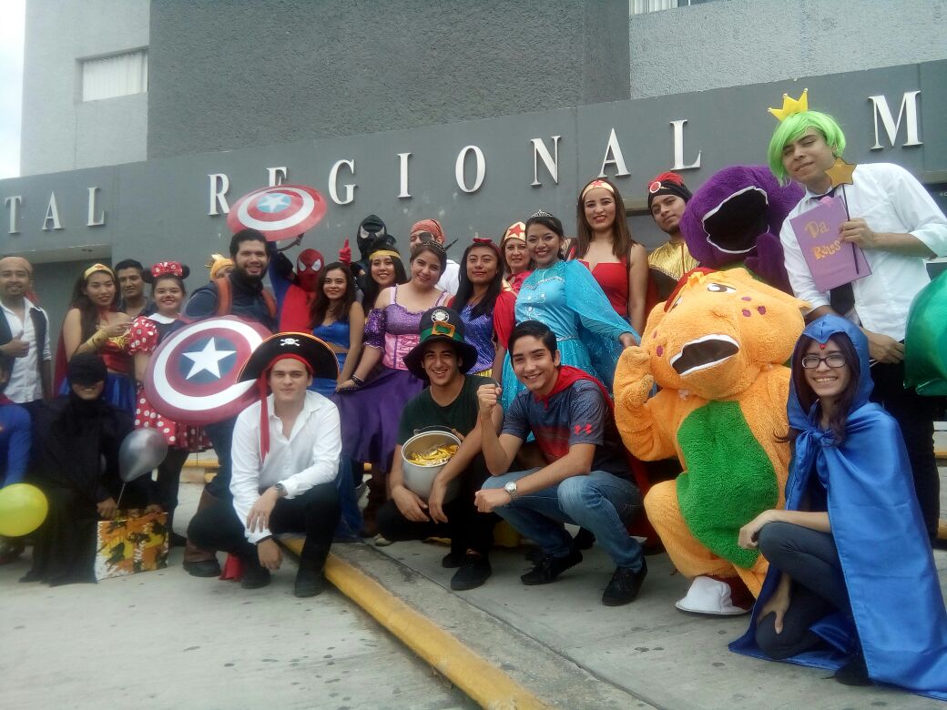 Vestidos de superhéroes, príncipes y princesas, cerca de 40 alumnos universitarios, con apoyos de patrocinadores en Mérida, regalaron juguetes, dulces y sonrisas a niños en el área de pediatría.