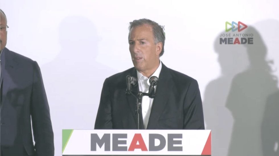 El candidato presidencial de la coalición Todos por México, José Antonio Meade, admitió que las tendencias electorales no le favorecen y reconoció el triunfo de Andrés Manuel López Obrador, abanderado de la alianza Juntos Haremos Historia.