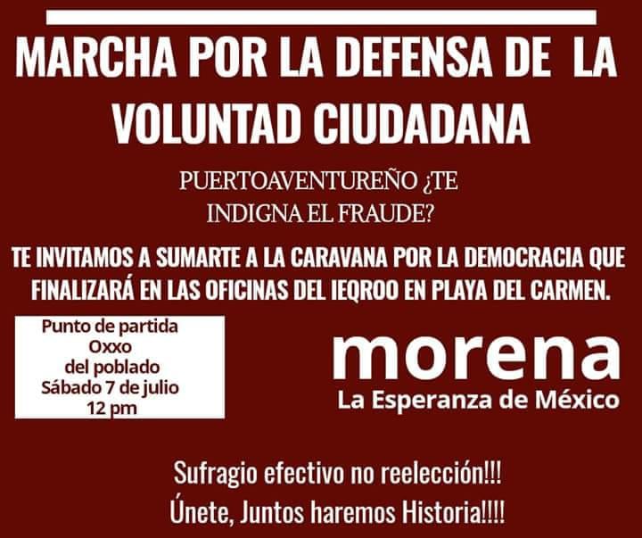La situación que está ocurriendo en Playa del Carmen es similar a la de Puebla, pues Morena está convocando a una “Marcha por la defensa de la voluntad ciudadana”, el día de mañana.