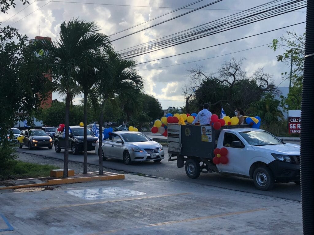 Al concluir este miércoles las campañas políticas para el proceso electoral del 6 de junio, el candidato ciudadano de la alianza Va por México a la Diputación Federal por el Distrito Electoral 3, Eloy Peniche, realizó una caravana para cerrar su campaña, en la que llamó a los cancunenses a salir a votar este 6 de junio por los partidos PAN, PRI y PRD.