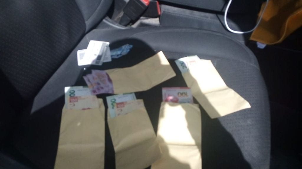 De acuerdo con el reporte policial, elementos de la Policía Estatal realizaban recorridos de seguridad y vigilancia por la zona, cuando se percataron que personas se encontraban repartiendo dinero en cinco vehículos: un Kia Río color gris sin placas, Chevrolet Blazer color verde, F150 color blanca, Chevrolet Equinox color negra y una camioneta Dodge Durango color roja.