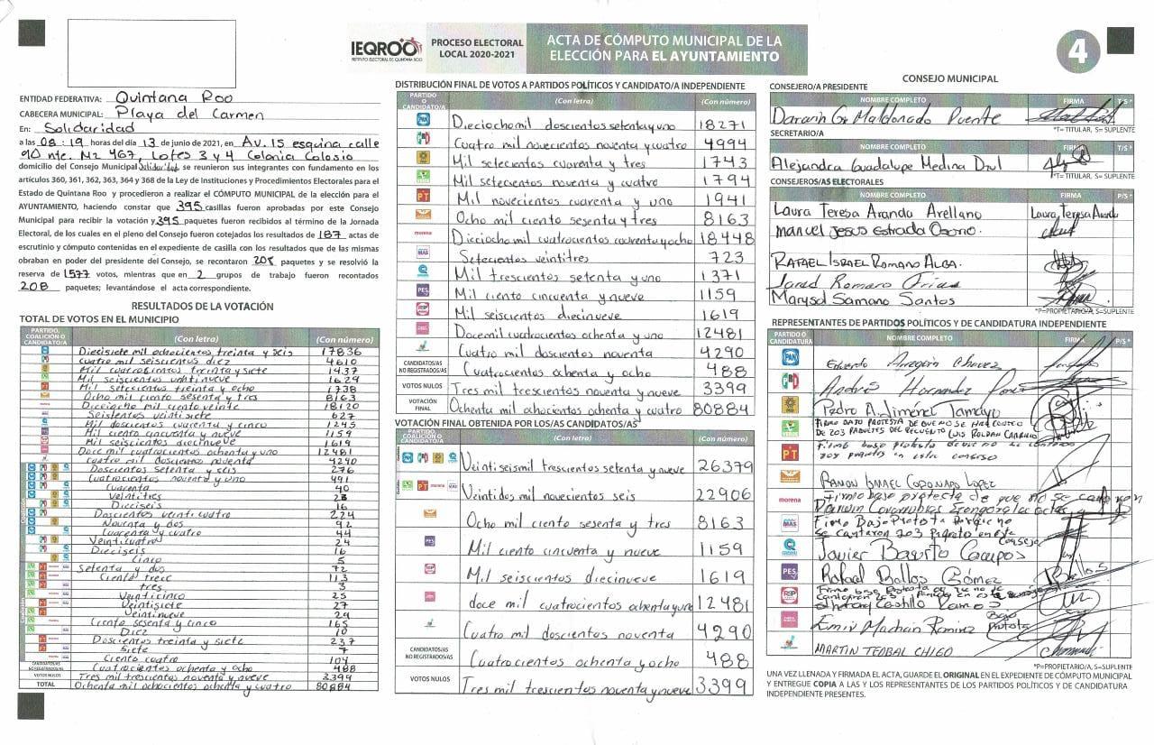Playa del Carmen, Mx.- La mañana de este martes, Lili Campos recibió la constancia de mayoría por parte del Instituto Electoral de Quintana Roo, IEQROO, que la acredita como presidenta municipal electa de Solidaridad para el periodo 2021-2024.