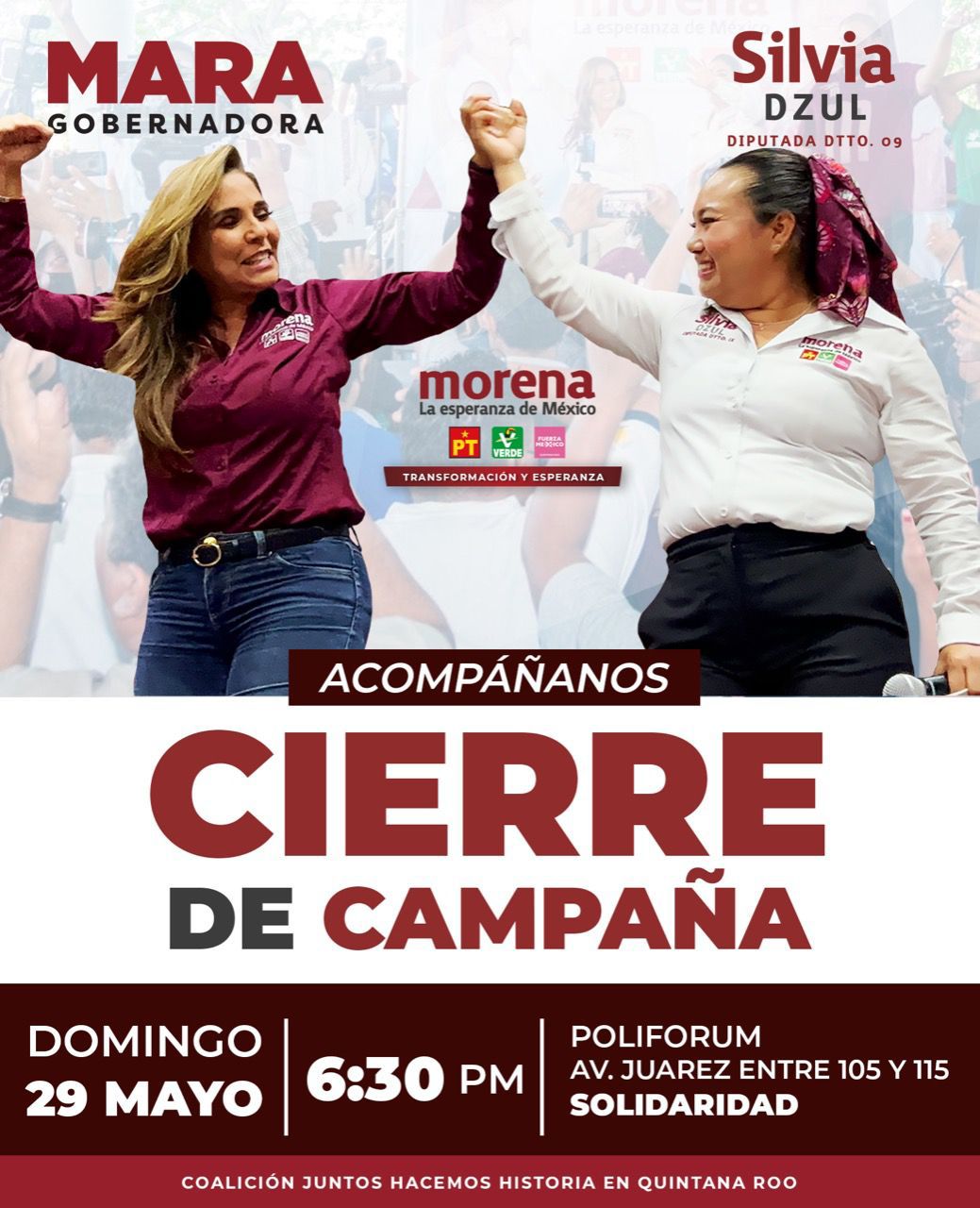El cierre de campaña de las candidatas de Morena en Playa del Carmen es firme y se mantiene para este domingo 29 de mayo.