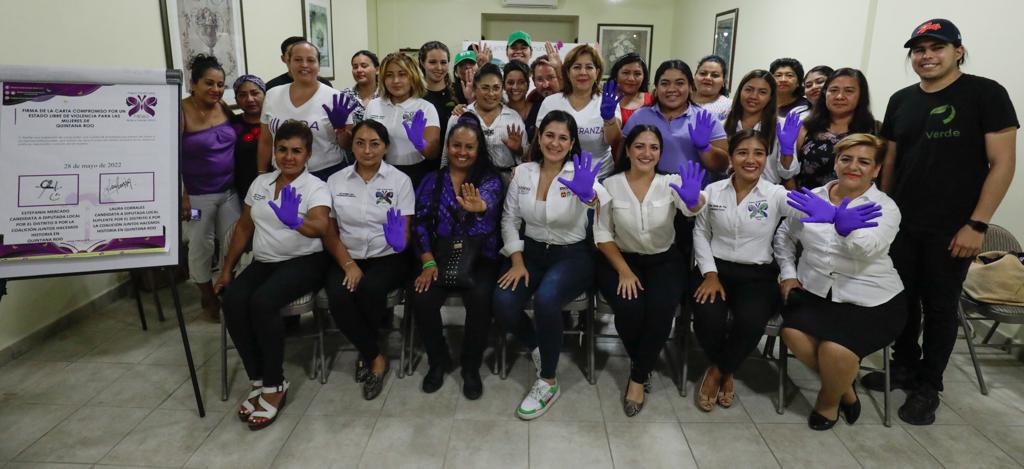 La Candidata de la Coalición Juntos Hacemos Historia, firmó este día junto con Laura Corrales, Candidata suplente, la “Carta compromiso por un estado libre de violencia para las mujeres de Quintana Roo”, que impulsan las organizaciones civiles “Mujeres transformando México desde la sociedad AC” y el movimiento “Mariposas Asociación Civil”, con el objetivo de contribuir a erradicar la violencia y desigualdad contra las mujeres.