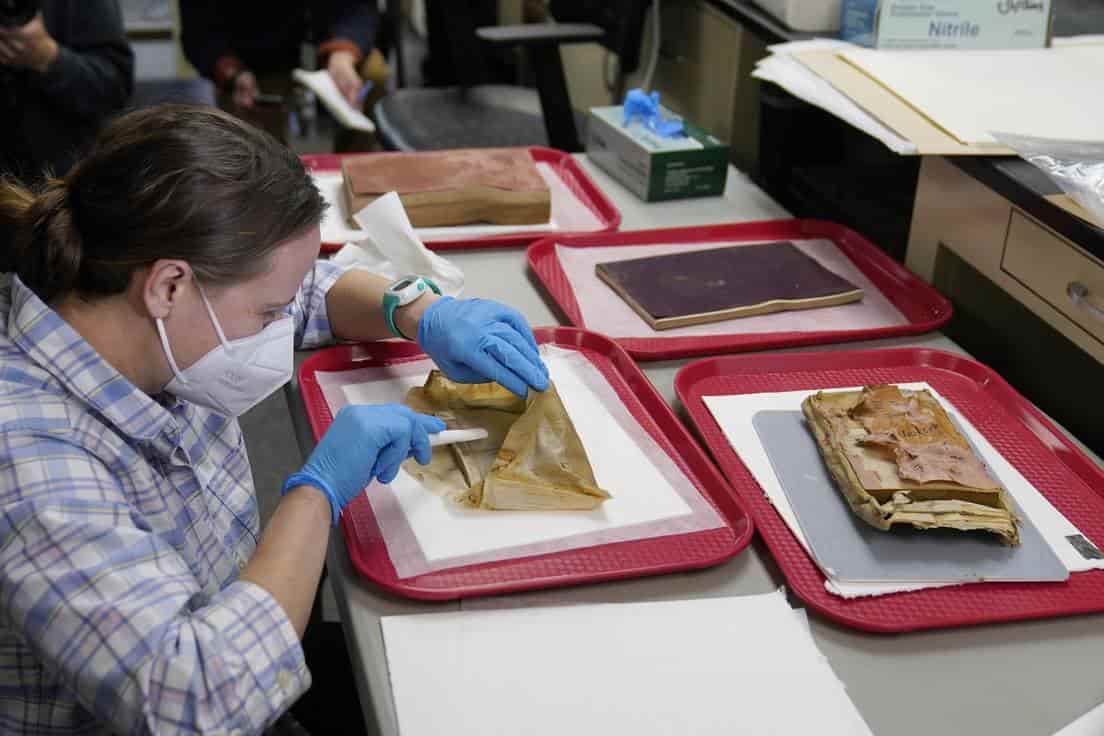 Por desgracia para la reliquia, los libros, el sobre y la foto fueron afectados por el agua que se coló en el cofre.