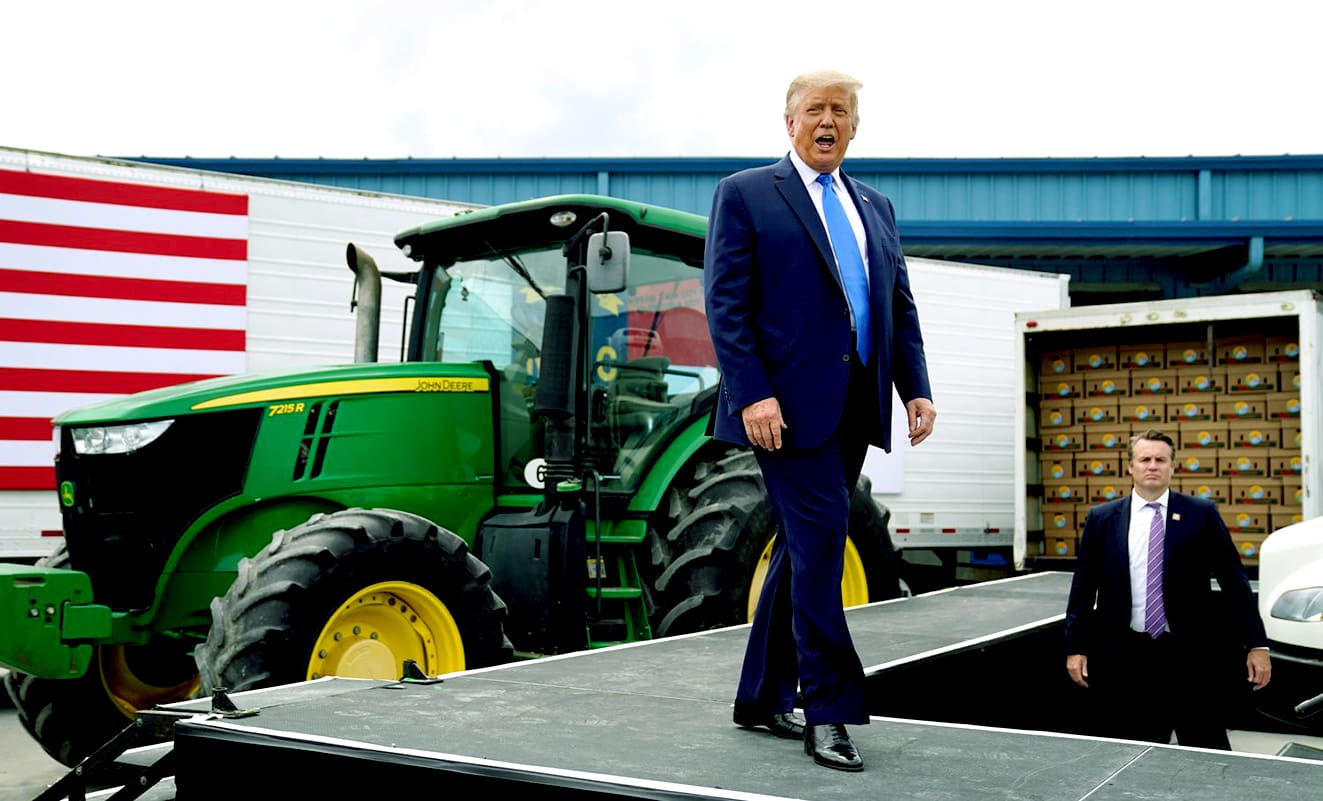 Rodeado de maquinaria “John Deere”, Trump aprovechó el evento para amenazar al fabricante, famoso por sus tractores verdes y su logotipo de un venado amarillo.