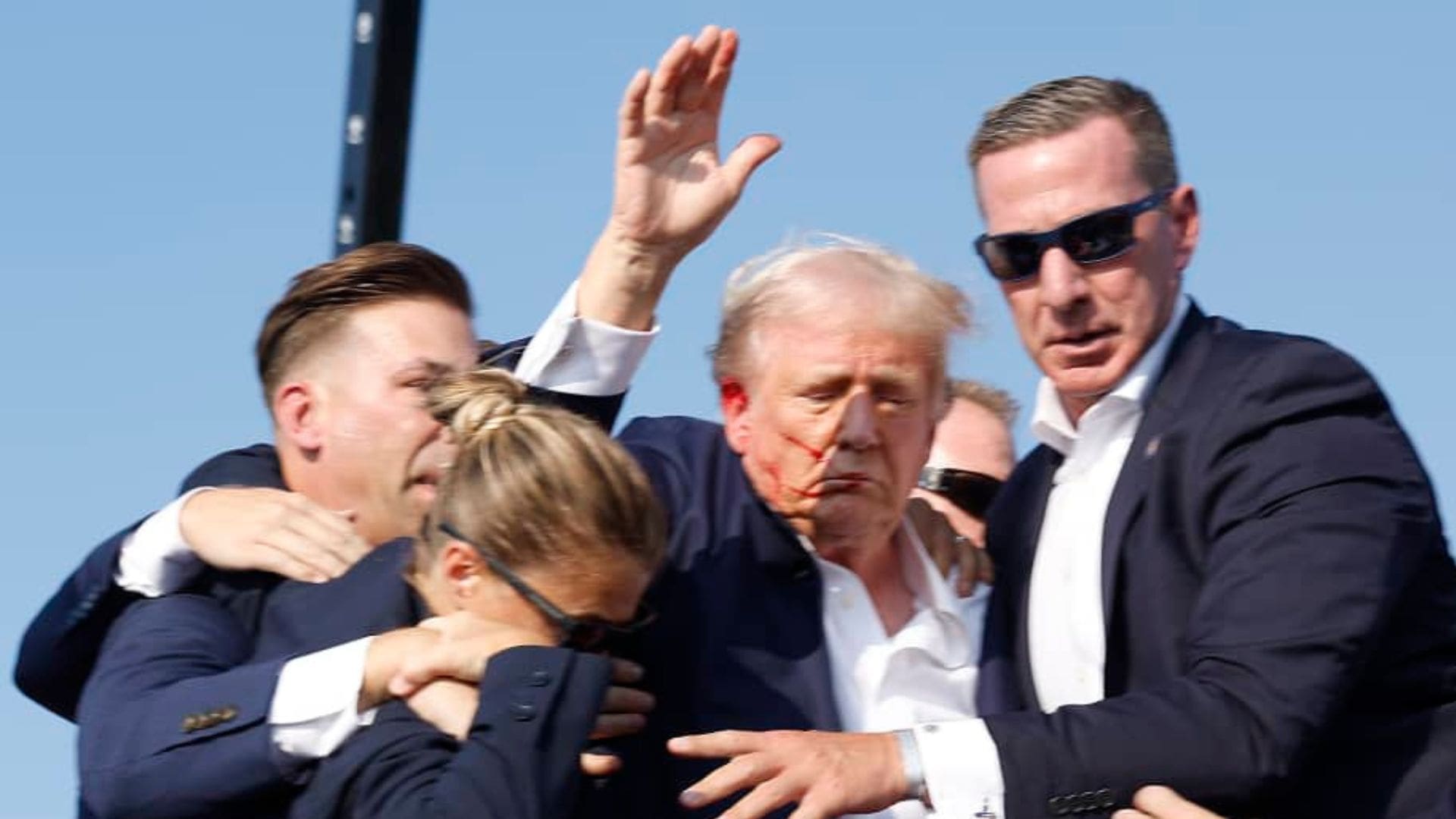 Tras los disparos contra el candidato republicano fue evacuado con restos de sangre en la cara, pero salió a pie y con el puño en alto.