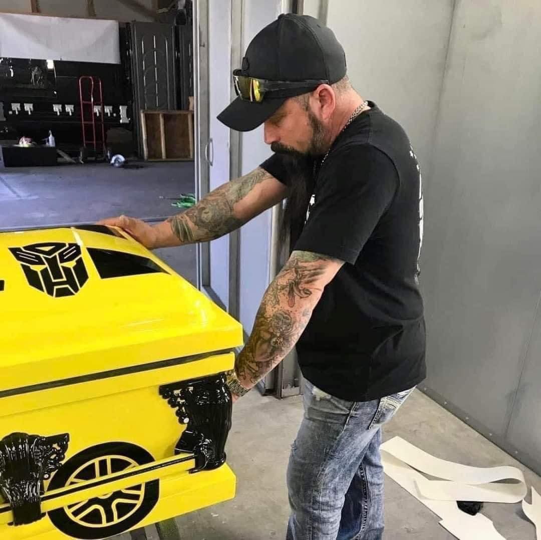 Sobre Trey Ganem sabemos que tiene 50 años de edad. Y esta es la labor a la que dedica habitualmente: fabricar ataúdes personalizados. En las redes sociales hemos podido ver algunas de sus donaciones. Están pintados con motivos de películas y superhéroes. Superman, Star Wars o Transformers son algunas de sus decoraciones.