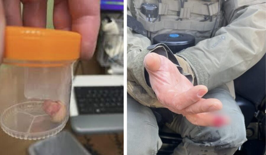 En su publicación, afirmó que el oficial “perderá su dedo” y acompañó el mensaje con imágenes gráficas que muestran lo que aparenta ser la parte lesionada del dedo.