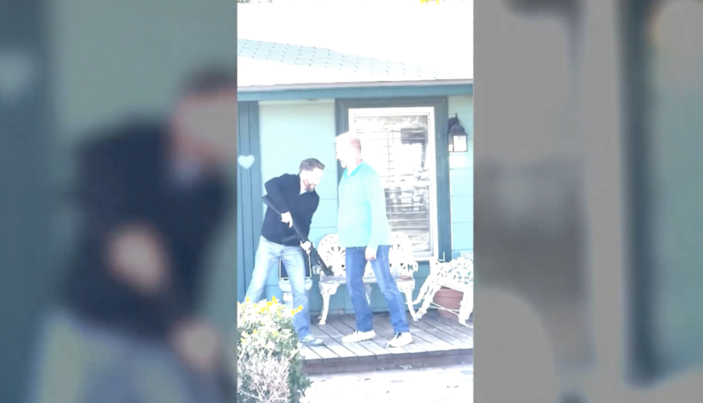 Es en ese momento, cuando Kyle sale de la casa armado con un rifle; los hombres pelean y golpean sus pechos entre sí mientras discuten.