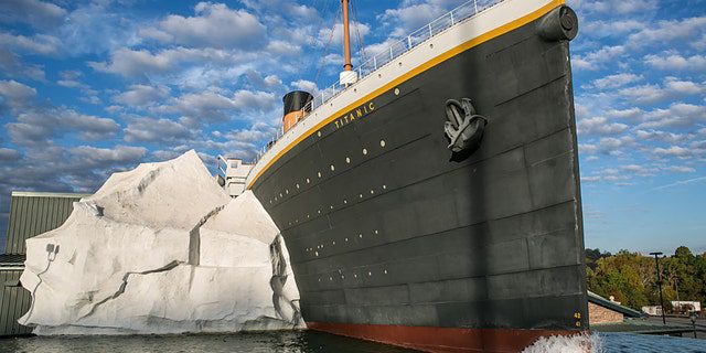 El museo del Titanic, ubicado en Tennessee, Estados Unidos ofrece un recorrido que simula el interior del barco junto a una enorme réplica del iceberg que lo hundió en 1912, la misma que recientemente causó un accidente similar en la que tres visitantes resultaron heridas.