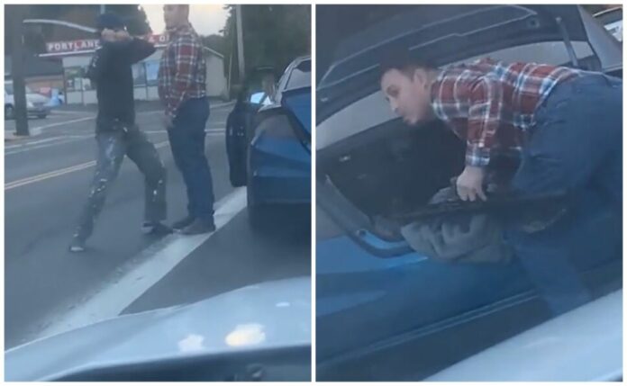 A través de redes sociales se volvió viral un video que muestra una insólita pelea entre dos conductores, lo que más llamó la atención fue que sacan una katana y un rifle, tras un incidente vial en Portland, Oregón, en Estados Unidos (EU).