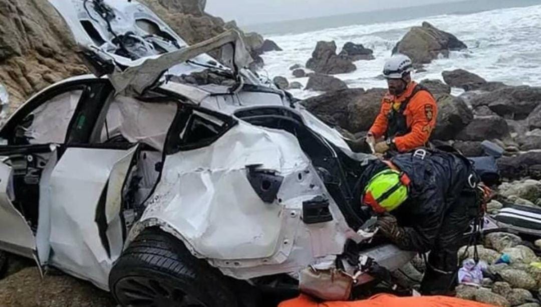 Lo que contamos ocurrió el lunes 2 de enero en California, Estados Unidos, donde un conductor de Tesla se lanzó con todo y vehículo a un acantilado de la autopista Pacific Coast Highway con otras tres personas a bordo, en este caso su esposa y sus hijos.