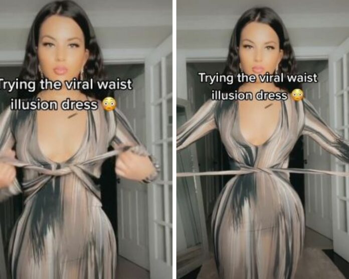 Estados Unidos.- Un vestido se ha hecho viral por crear la ilusión de que ciñe la cintura, lo cual ha dejado boquiabiertos a los usuarios de TikTok, esto gracias a un estampado que engaña a la vista y hace parecer que estás más delgada.