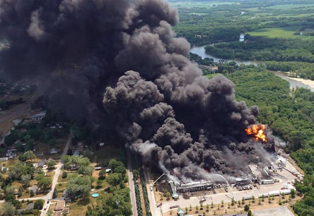 McDaniel aseveró que no estaba segura de qué productos químicos podrían haber estado contenidos en la columna. Actualmente, las autoridades continúan las diligencias para contener el incendio.