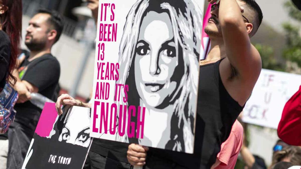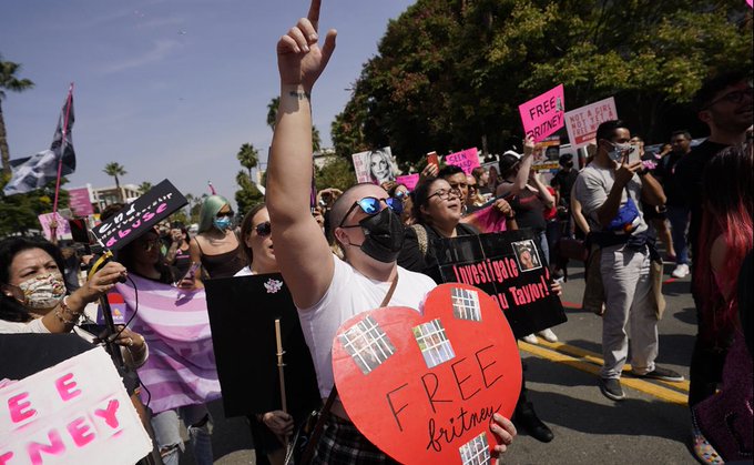 Unos 100 admiradores marcharon a las afueras del lugar y uno de sus gritos era “la tutela debe terminar” entre otras consignas a favor de la suspensión de la tutela del padre sobre Britney.