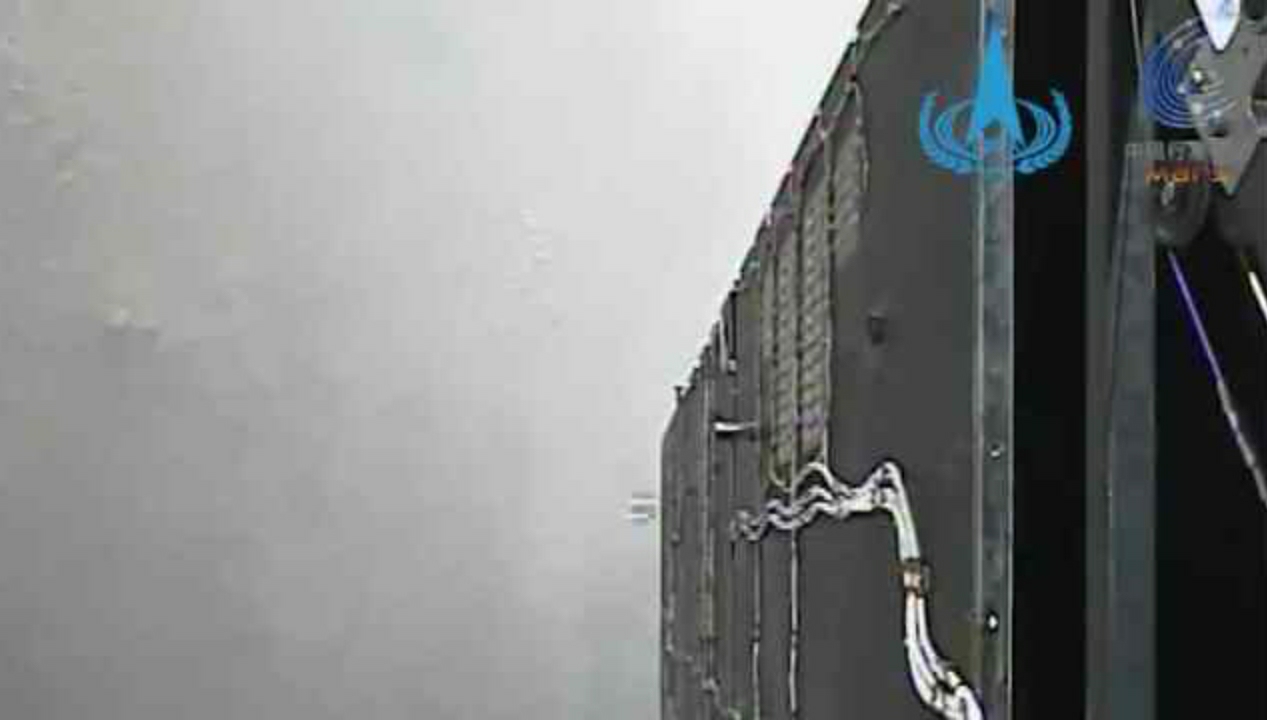 Los dos videos, de menos de un minuto cada uno, realizados en el momento que la Tianwen-1 captan el momento exacto en que entró en la órbita de Marte después de seis meses y medio de viaje desde la Tierra.