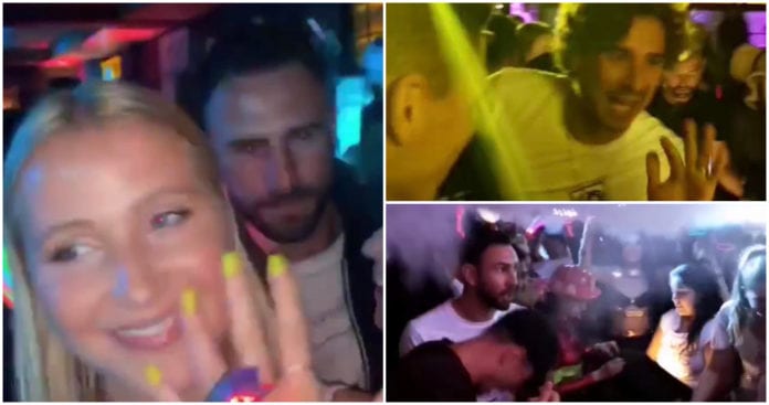 En los videos, tomados de historias de Instagram, se aprecia que los futbolistas estuvieron hasta casi las 5:00 de la tarde en el lugar con varias mujeres que no son sus esposas.