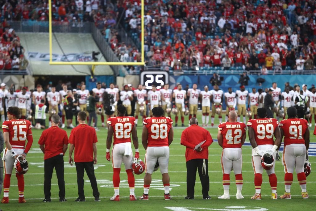 El Super Bowl LIV que se disputa entre los Chiefs y los 49ers, arrancó con un emotivo homenaje a Kobe Bryant,que falleció el fin de semana pasado en un accidente aéreo.