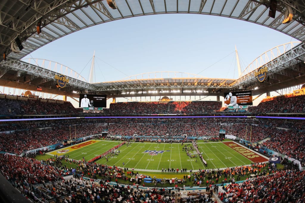 Jugadores de ambos equipos salieron al campo del Hard Rock Stadium, para formarse dentro del terreno de juego y dedicarle un minuto de silencio a Kobe Bryant, así como a su hija Gianna y las otras siete víctimas del accidente.