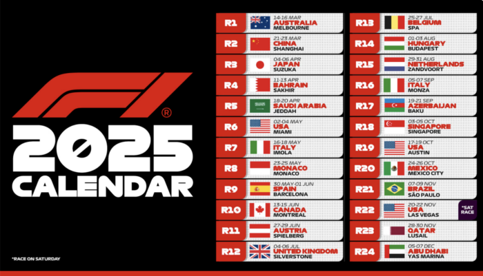 La Fórmula 1, máxima categoría del automovilismo internacional, presentó su calendario para la temporada 2025, que consistirá de 24 carreras e importantes cambios a lo presentado en la temporada actual, así como el regreso del Gran Premio de la Ciudad de México, el cual mantiene sus fechas usuales de cara a su último año de contrato.
