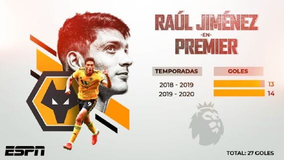 El delantero mexicano Raúl Jiménez, llegó este sábado a 14 tantos con el Wolverhampton en el retorno de la Premier League, lo que lo deja hasta el momento, como el mexicano con mayor número de anotaciones de este torneo.