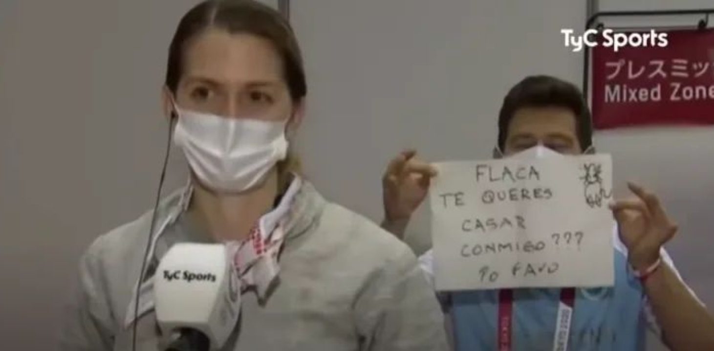 Después de ser eliminada de los Juegos Olímpicos de Tokio 2021, la esgrimista argentina Belén Pérez recibió una propuesta de matrimonio durante una entrevista.